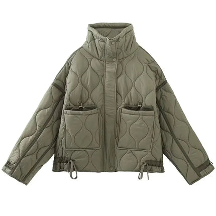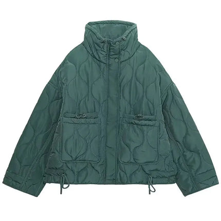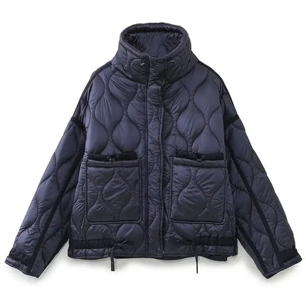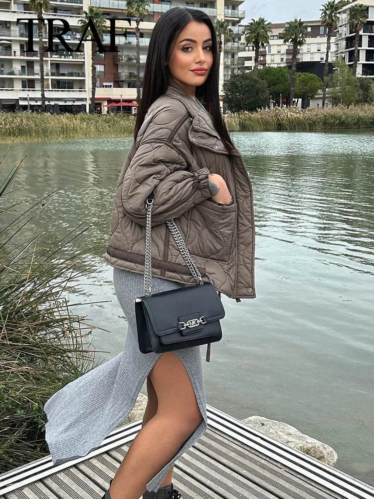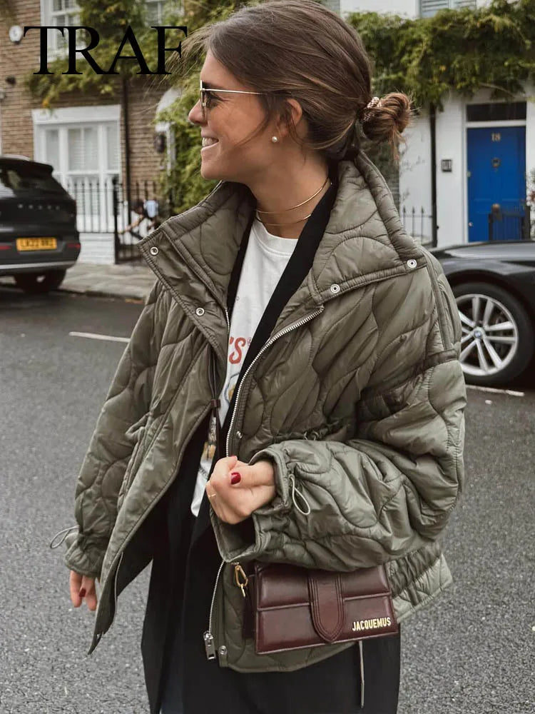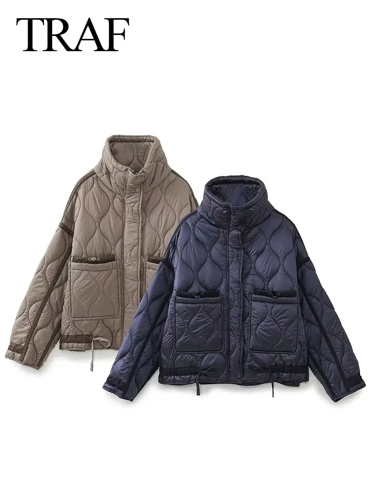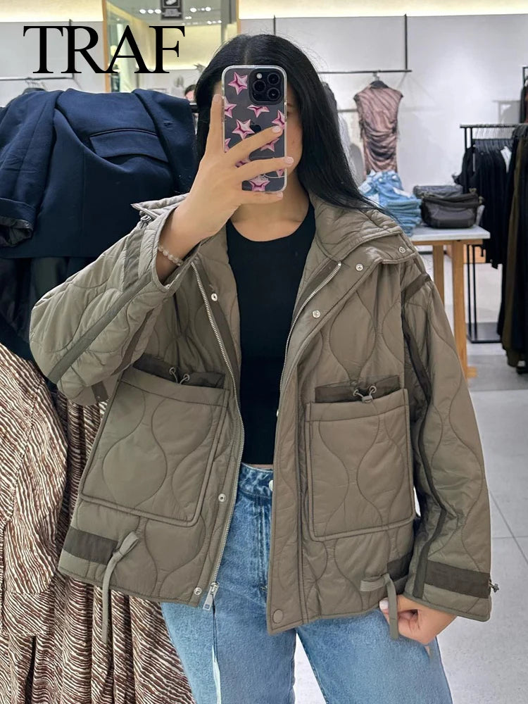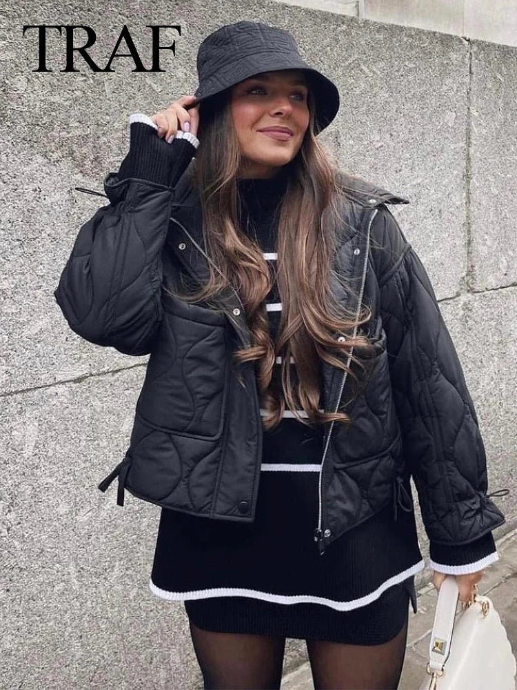 TRAFZA 2024 New Women Fashion Coat Long Sleeve Jackets With Drawstring Versatile Hight Street Outerwear Female Mujer Winter Coat