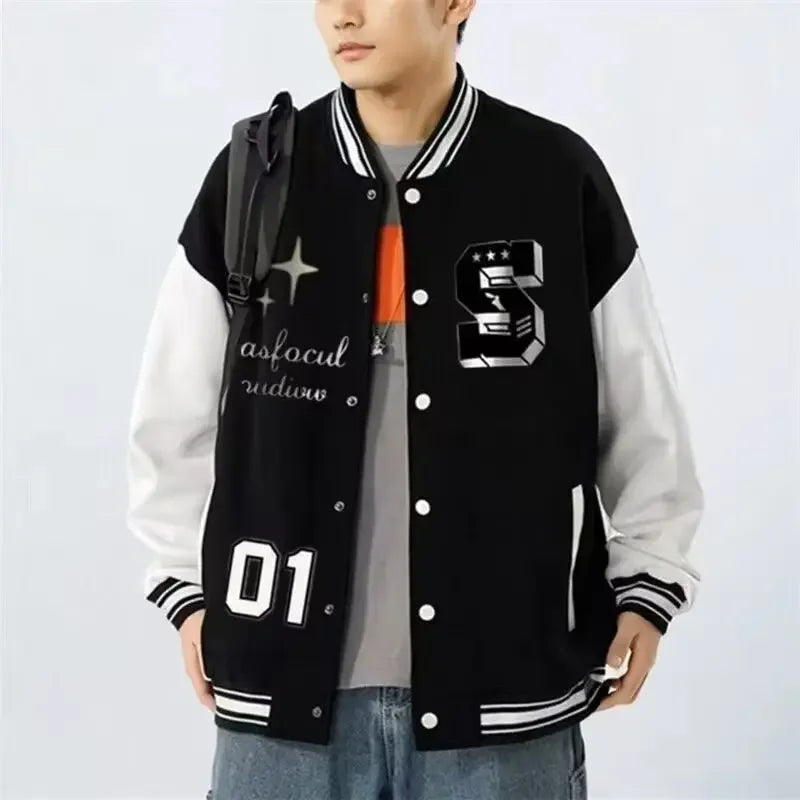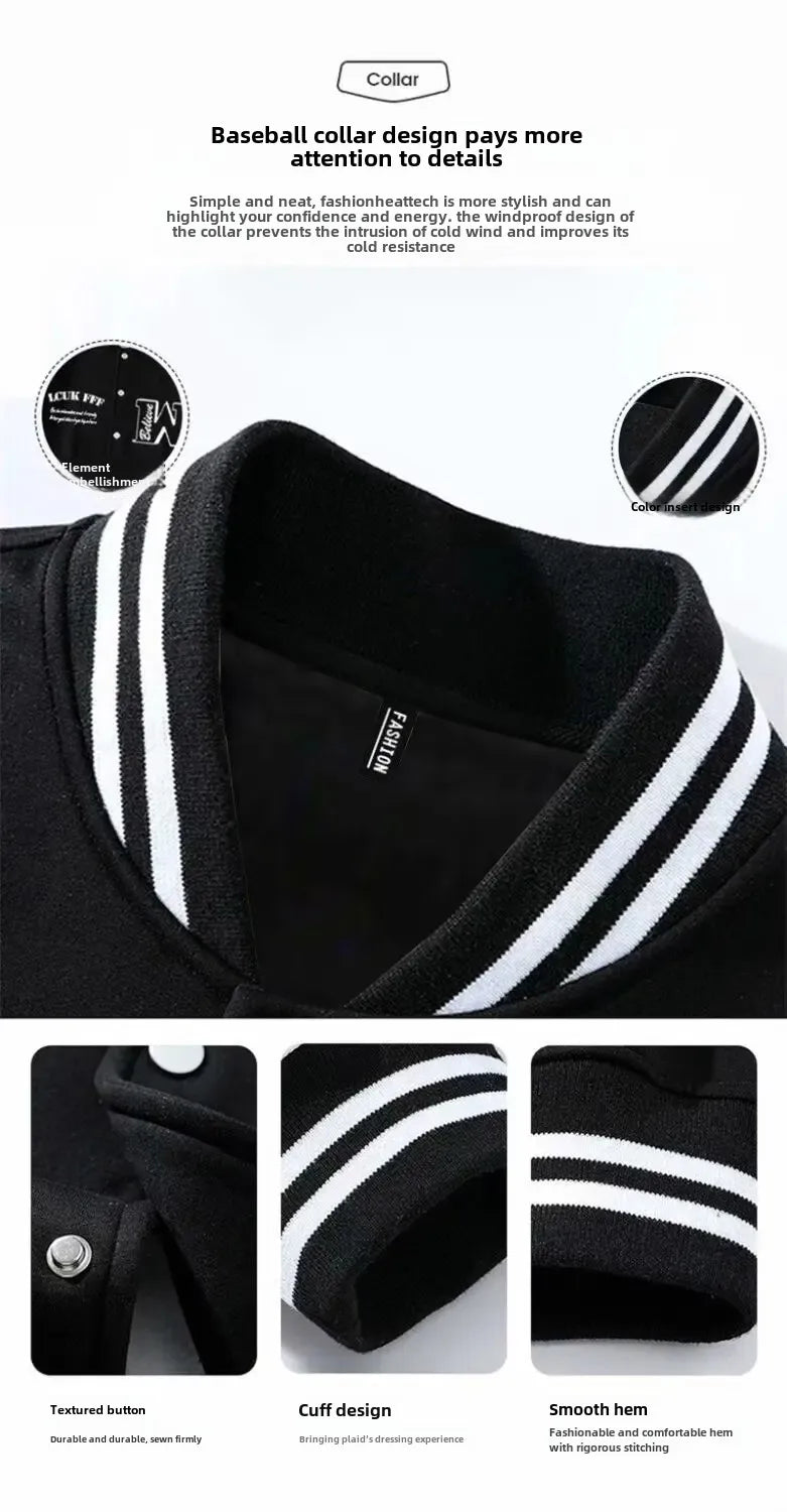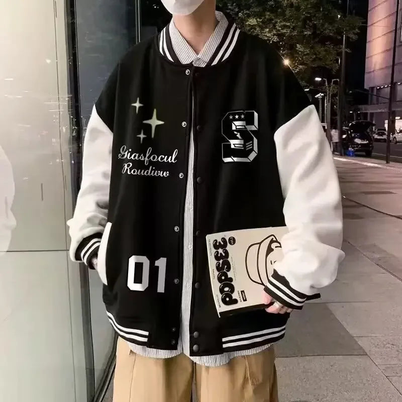 Trendy Loose-Fit Men's Baseball Jacket Casual Ins Hong Kong Style Anti-Fashion Thickening Spring Autumn Seasonal Wear