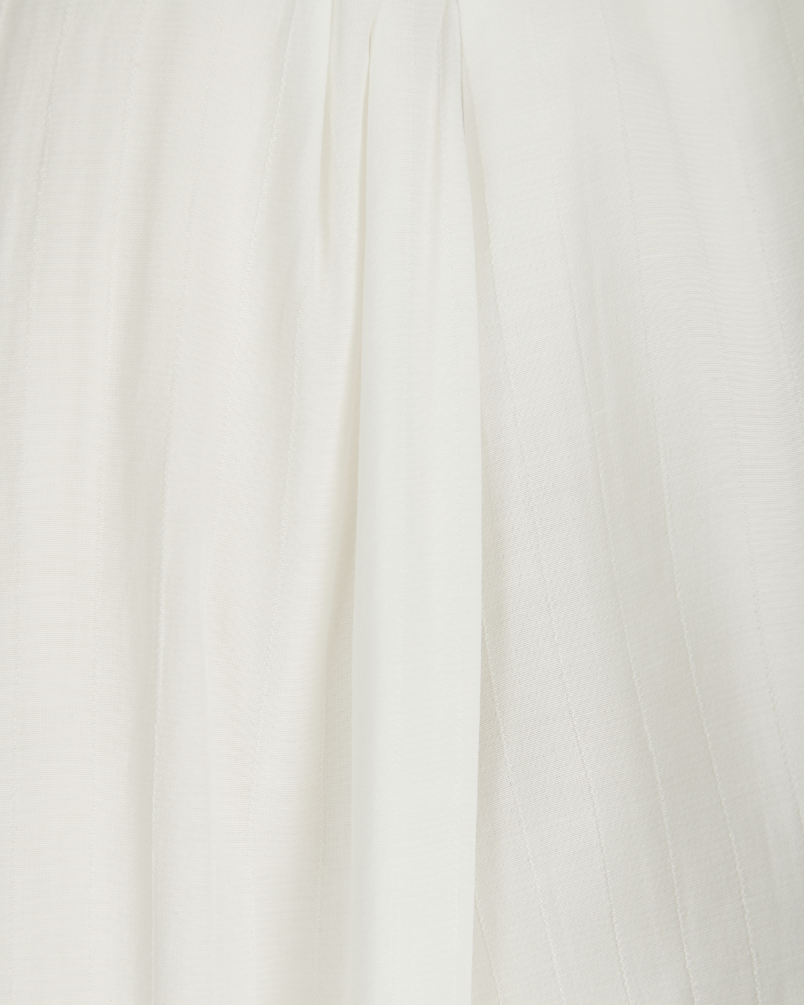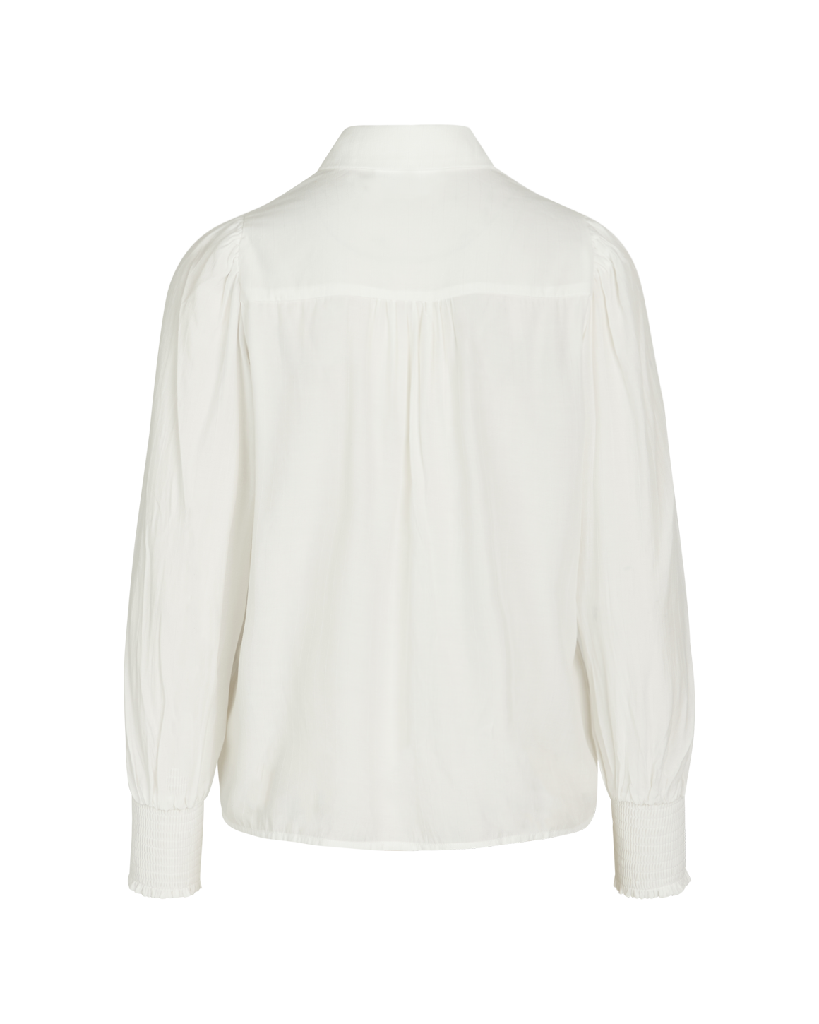En elegant skjorte i ensfarvet sort med diskrete tone-i-tone striber, der giver et sofistikeret spil i stoffet. Skjorten har en feminin V-hals og lange ærmer afsluttet med smock, som tilfører et let og moderne udtryk. Perfekt både til hverdagsbrug og mere festlige lejligheder.