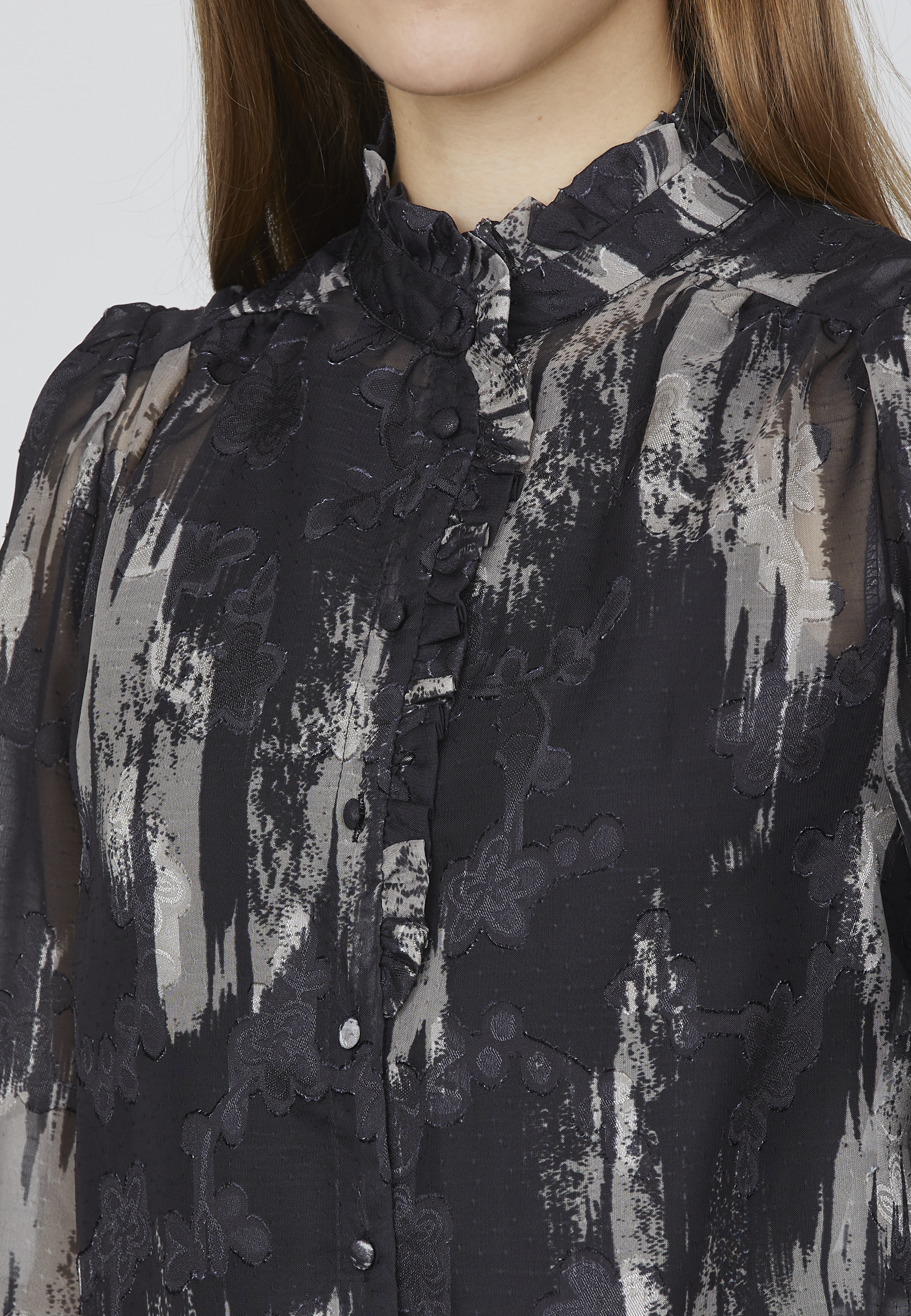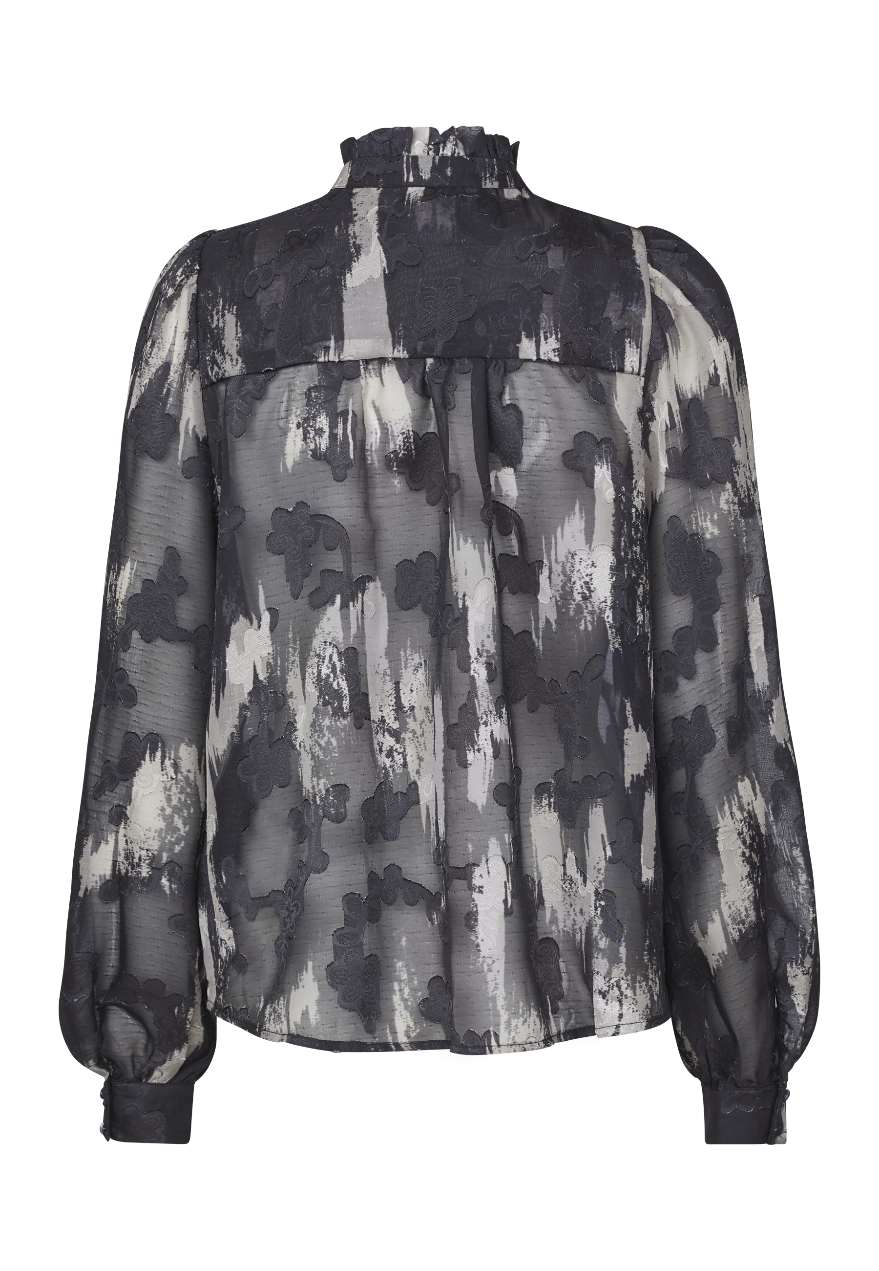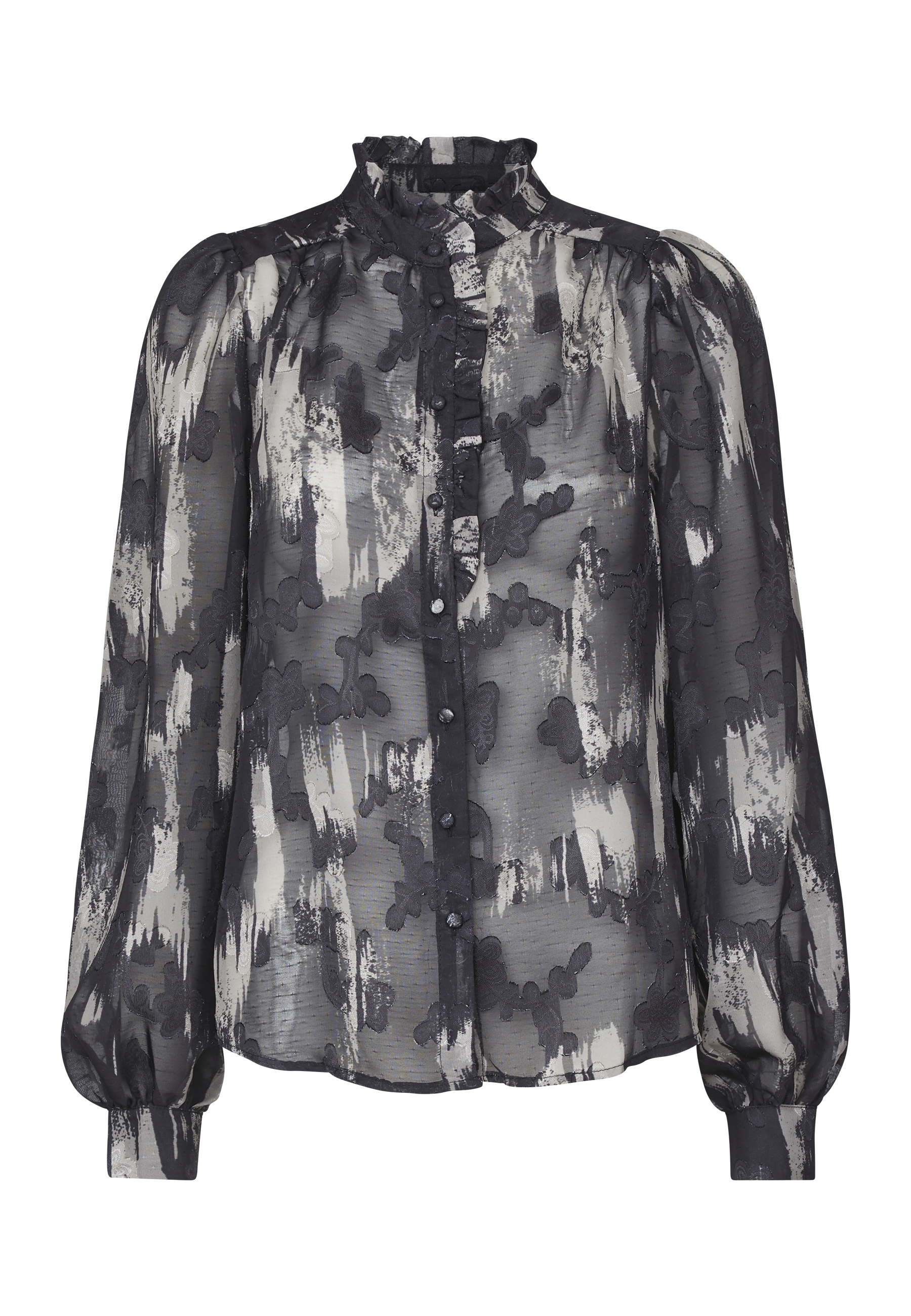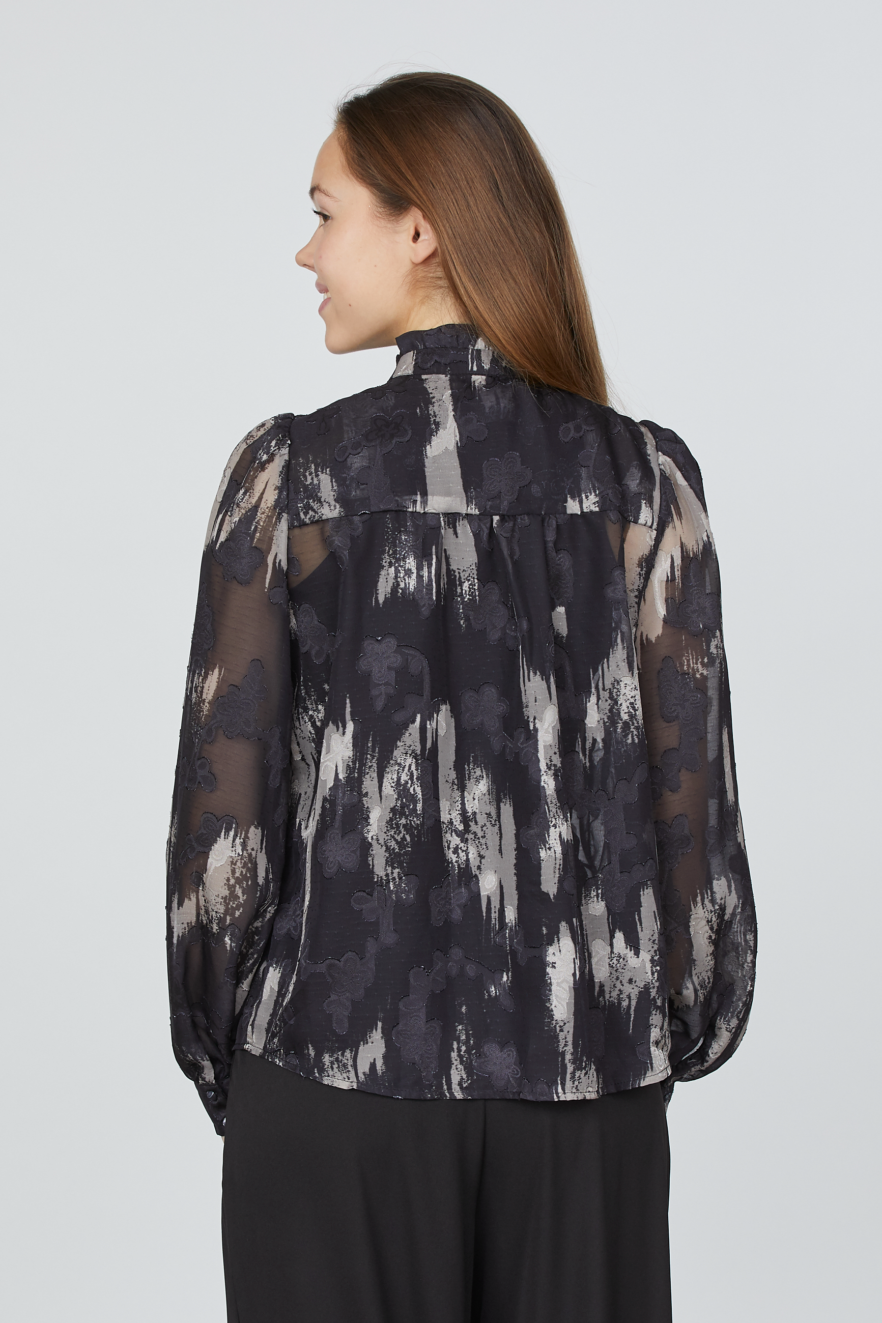 Opdag tidløs elegance med denne gennemsigtige skjorte fra Sisters Point, der kombinerer et smukt, detaljeret mønster med moderne snit. Skjorten er designet med fine knapper og en lille, klassisk krave, der tilføjer et sofistikeret og feminint touch. Den gennemsigtige kvalitet skaber en let og luftig følelse, perfekt til lag-på-lag styling eller som som den er.
