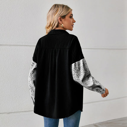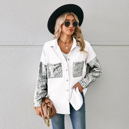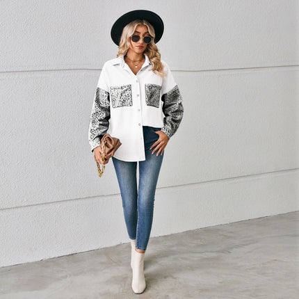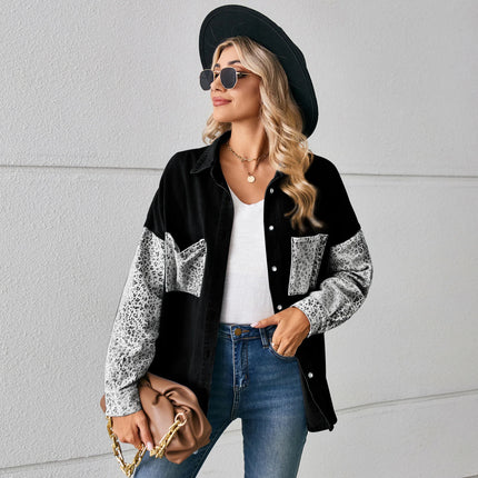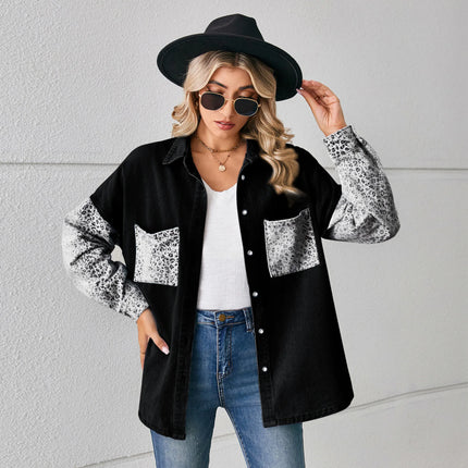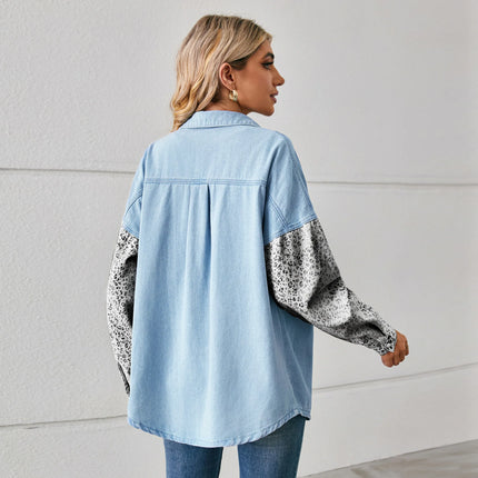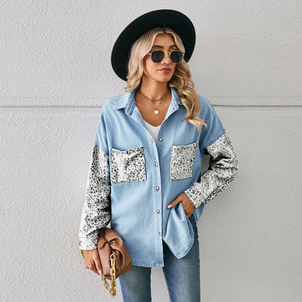Washed Denim Jacket For Women Blouse Tops Long Sleeve Leopard Print Lady Shirt Casual Pocket Spring Women's Jean Cardigans