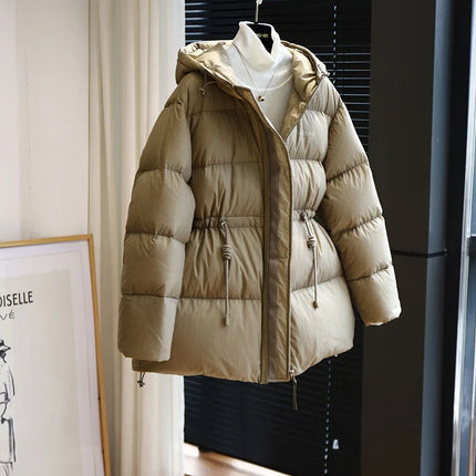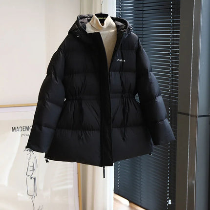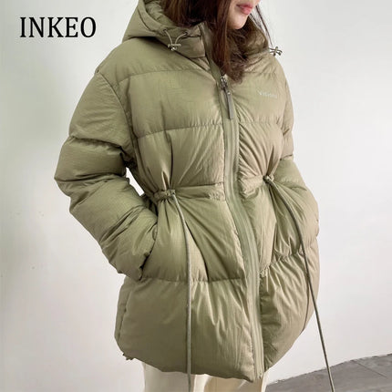 Winter luxury Hooded down jacket women Warm Fashion Adjustable waist puffer coat Oversized Ladies Clothes Snow INKEO 2O176