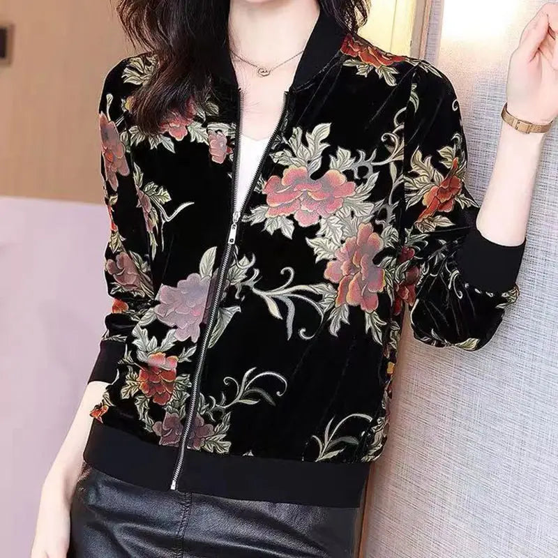 Women's Clothing Lantern Long Sleeve Polka Dot Geometric Plant&Flowers Printing Zipper Cardigan Spring Autumn Coats Casual Tops