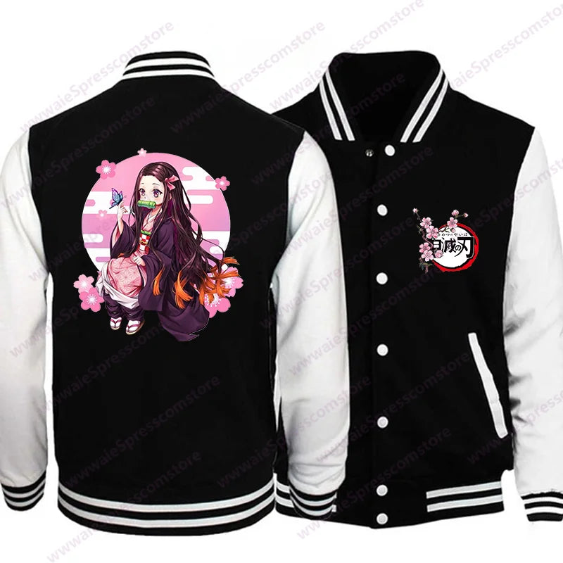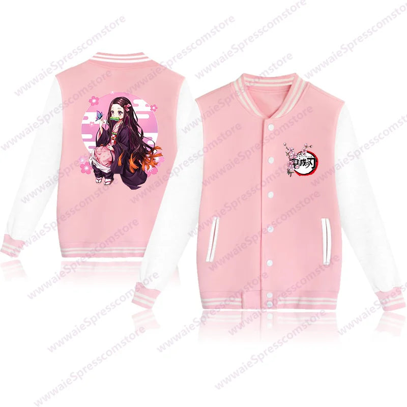 Women's Cute Anime Kamado Nezuko Harajuku Sweatshirt Fashion New Kamado Nezuko Baseball Jersey Jacket Top