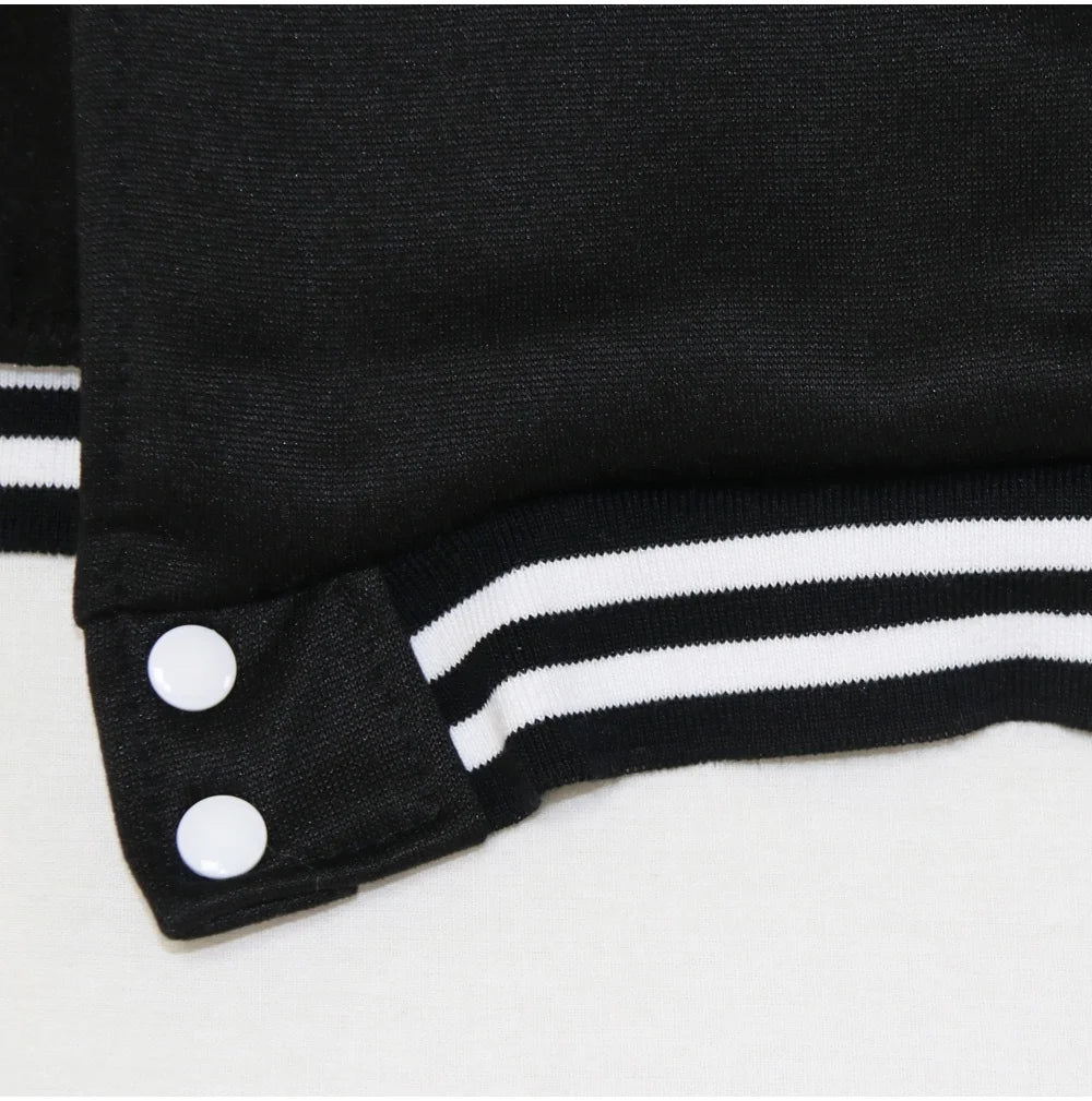 This product is a women's anime-themed varsity jacket inspired by Nezuko Kamado from Demon Slayer. It blends Harajuku fashion with a baseball jersey design, making it a stylish and casual outerwear choice. The jacket is available in gray, black, navy blue, and pink, with sizes ranging from XXS to 4XL. It features a double-breasted closure and is designed for autumn wear, offering a mix of comfort and trendy anime aesthetics.