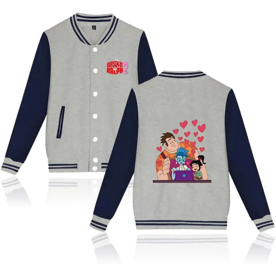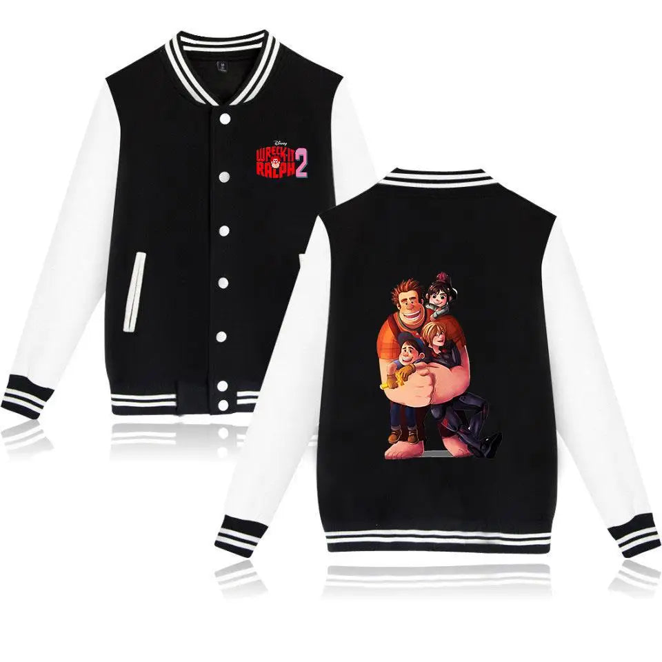 Wreck-It Ralph Varsity Baseball Bomber Jackets Men Women Clothes Streetwear Kids Boys Girls Harajuku Jacket Single Coats