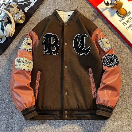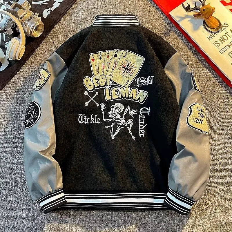 Y2K Harajuku Style New Fashion Vintage Baseball Uniform Woolen Coat Men American High Street Retro Couple Stitching Jacket Women