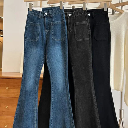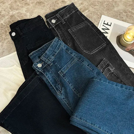 ZMZBCH High Waist Trousers Loose Washed Jeans Pockets Slim Denim Flare Classic Women Vintage Stretch Straight Trousers All-match