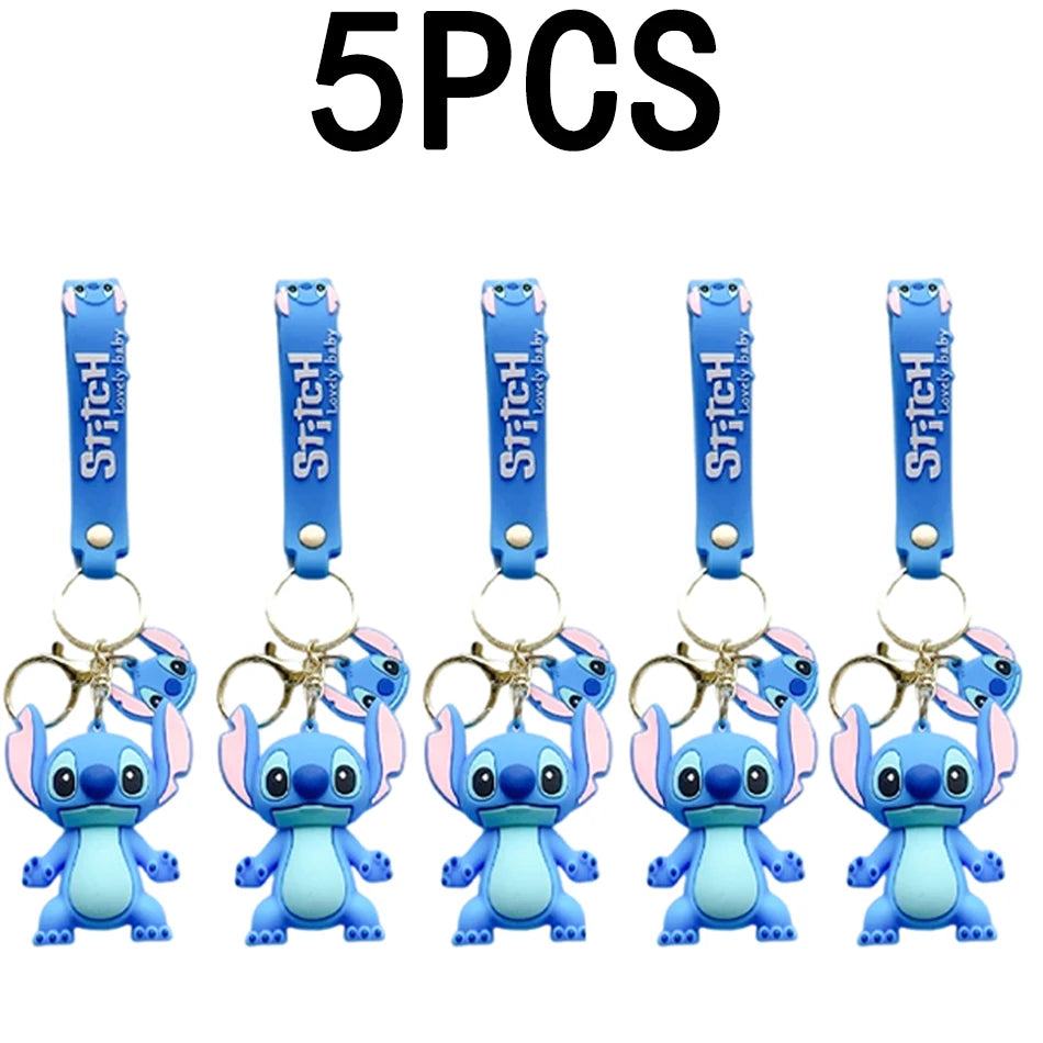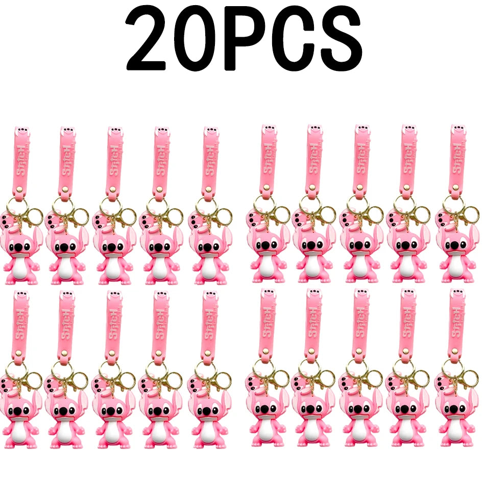 5Set 20PCS Wholesale Stitch Disney Keychain Figure Toy Cute Supple Cartoon Character Toy Keychain Pendant Fan Kid Birthday Gifts