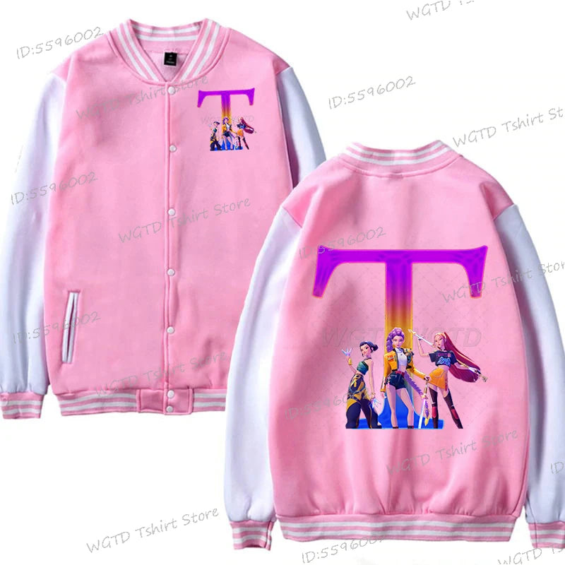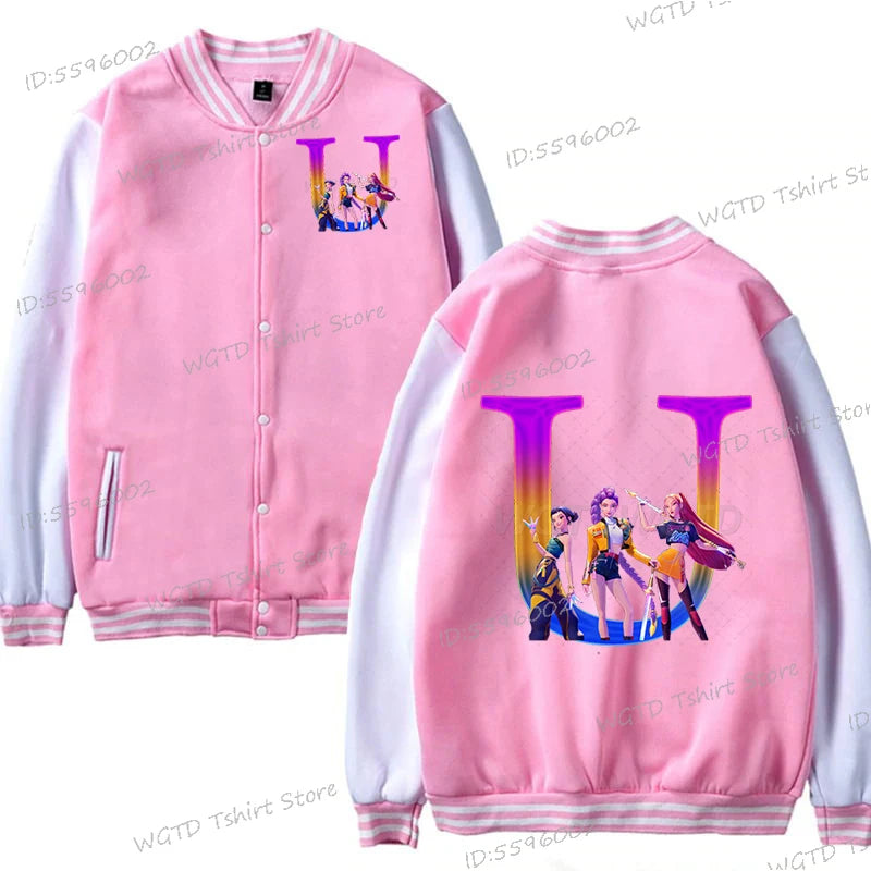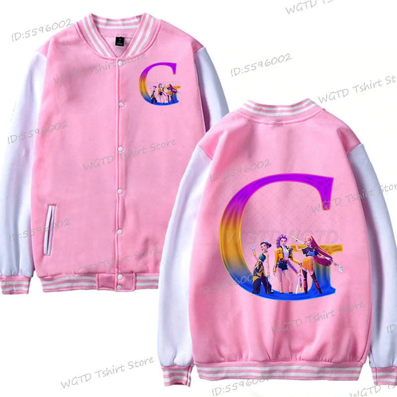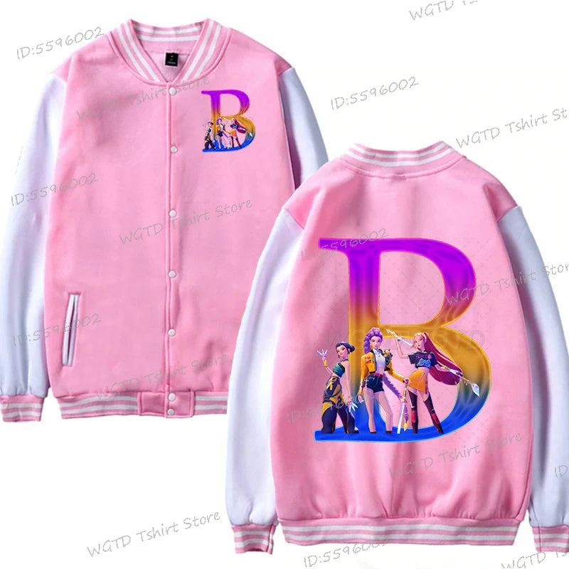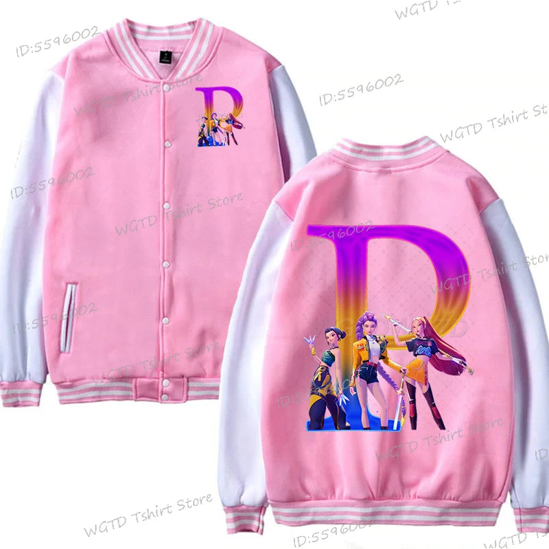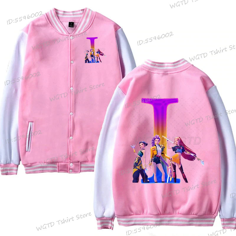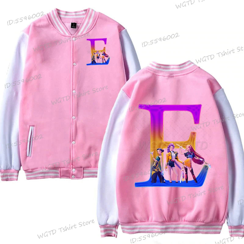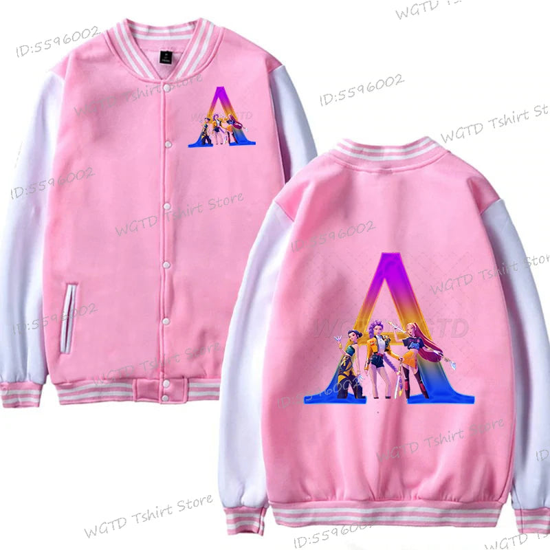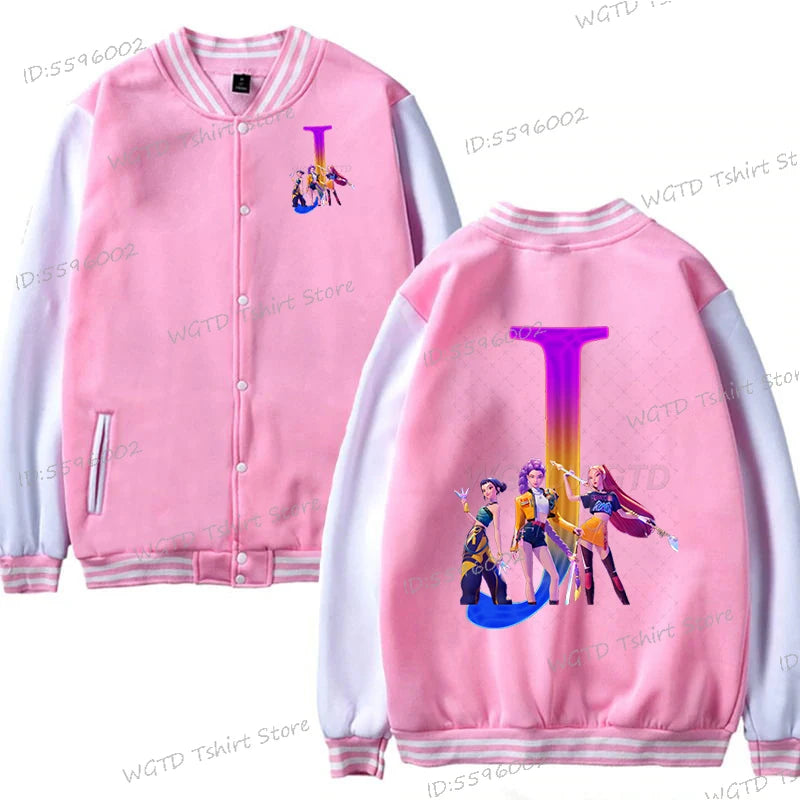 Hot Movie Lover Baseball Bomber Jacket Clothes Child Girl Letter A-Z Kids' Pink Bomber Jacket Gifts Fashion Clothes Gift
