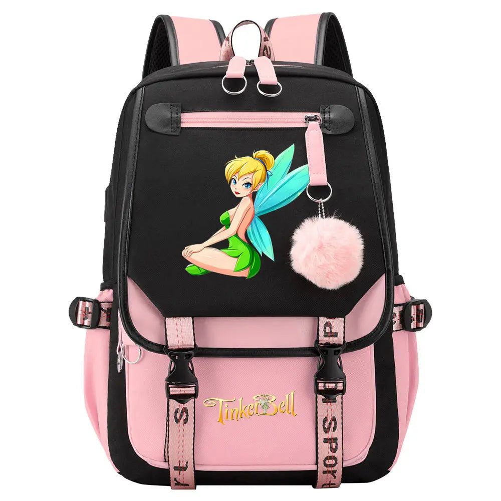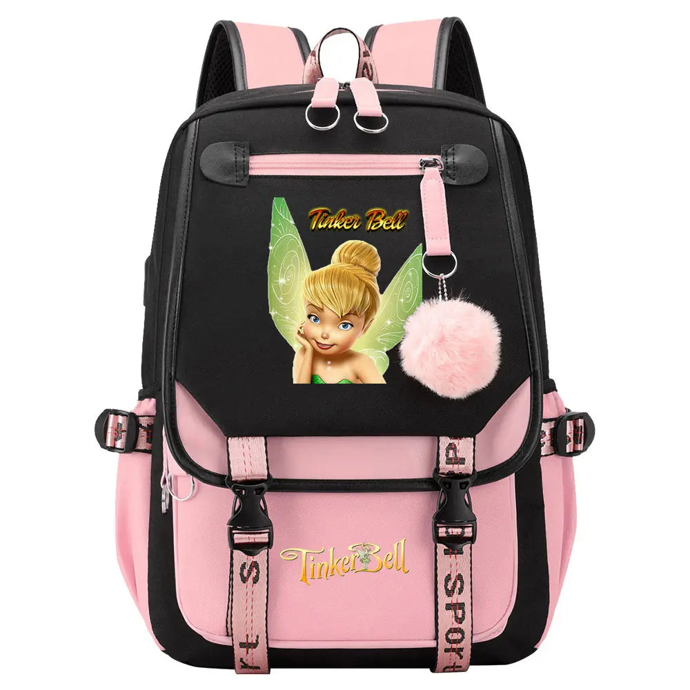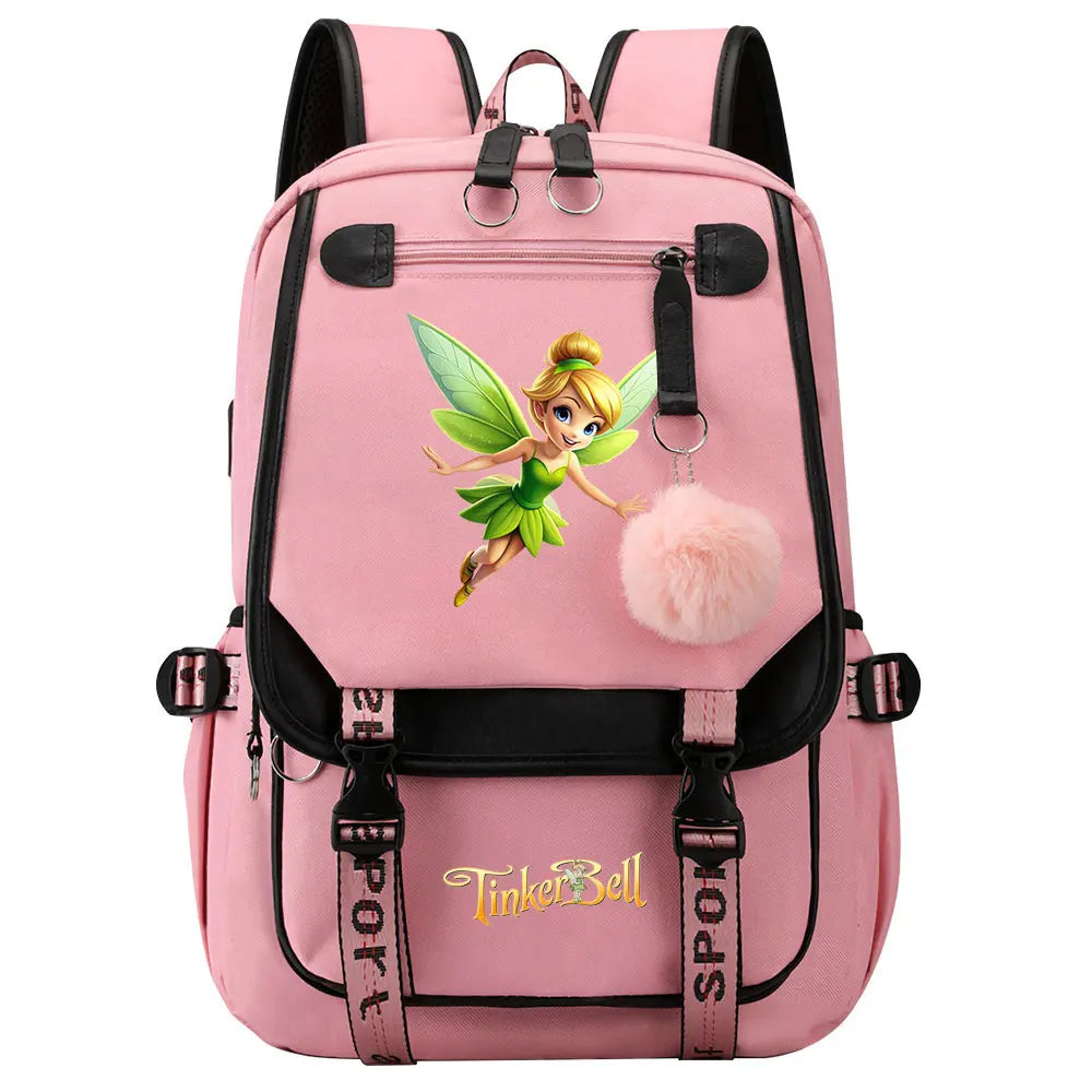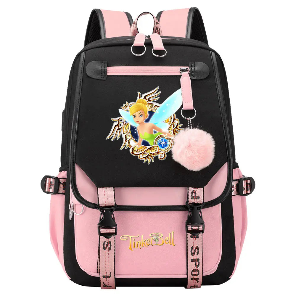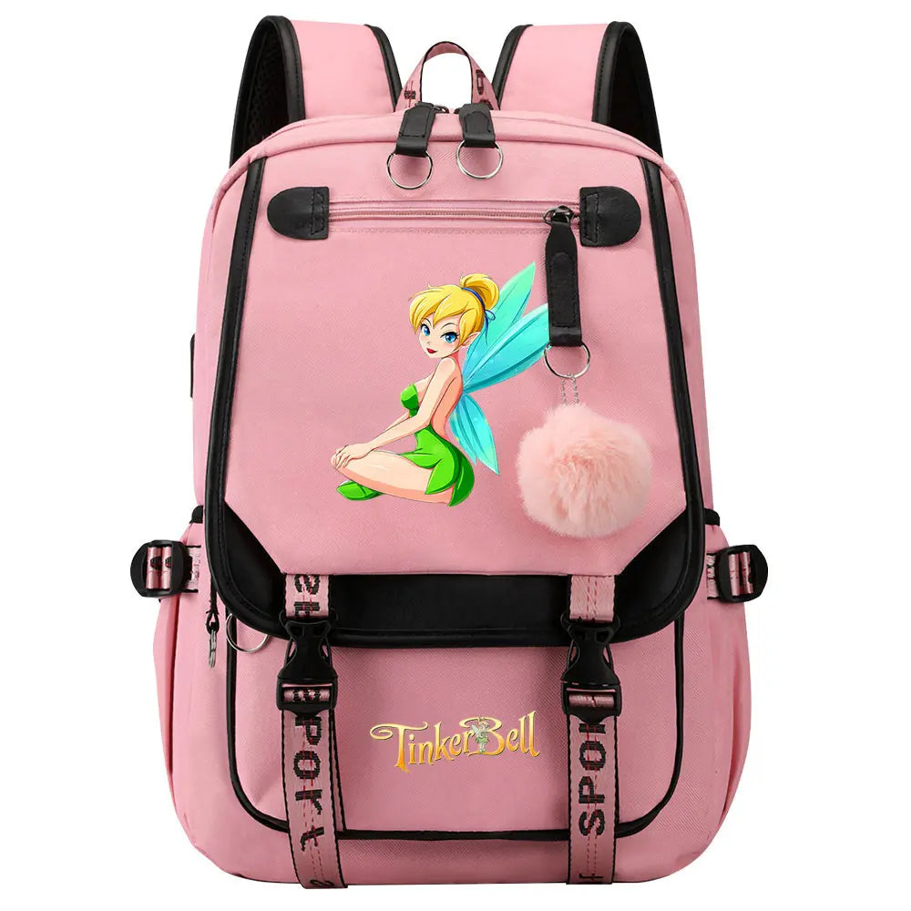 kawaii Tinker Bell Princess Boys Girls Kids School Book Bags Women USB Bagpack Teenagers Canvas Laptop Travel Student Backpack