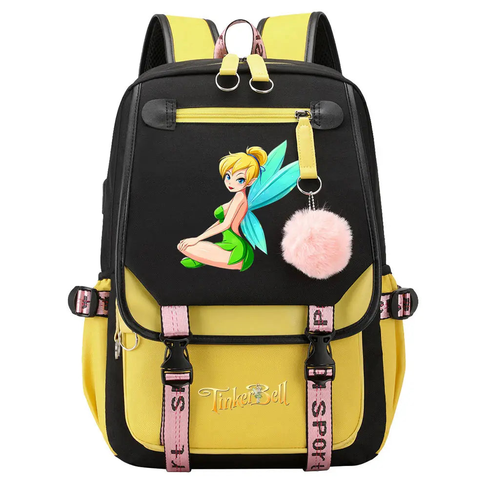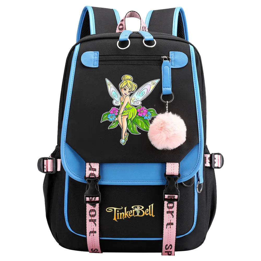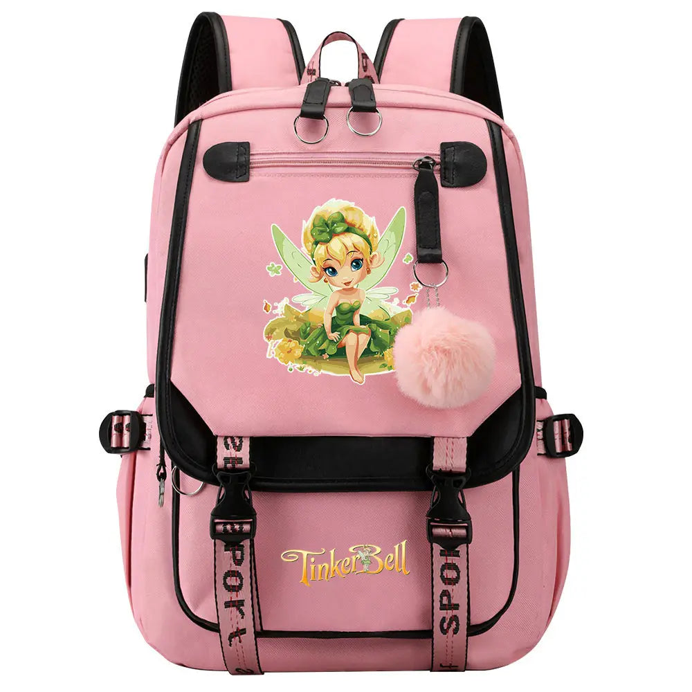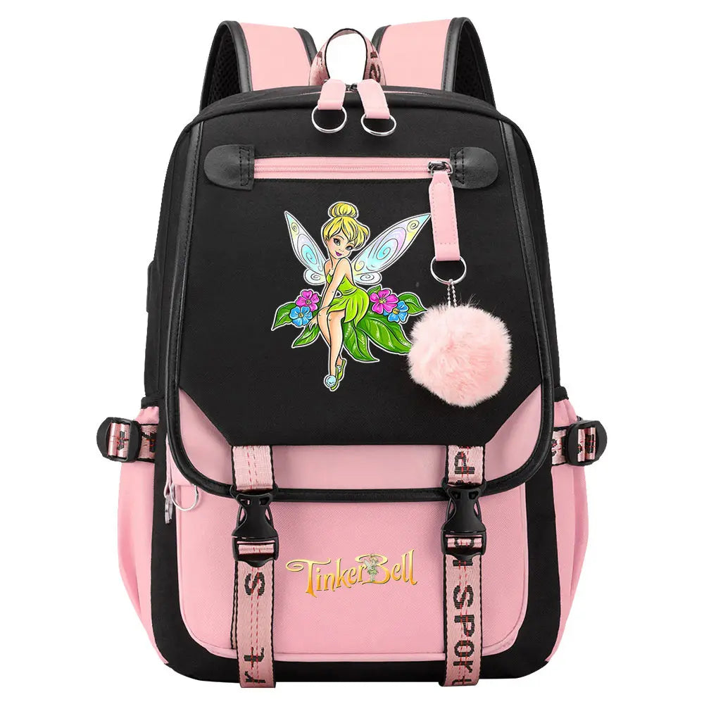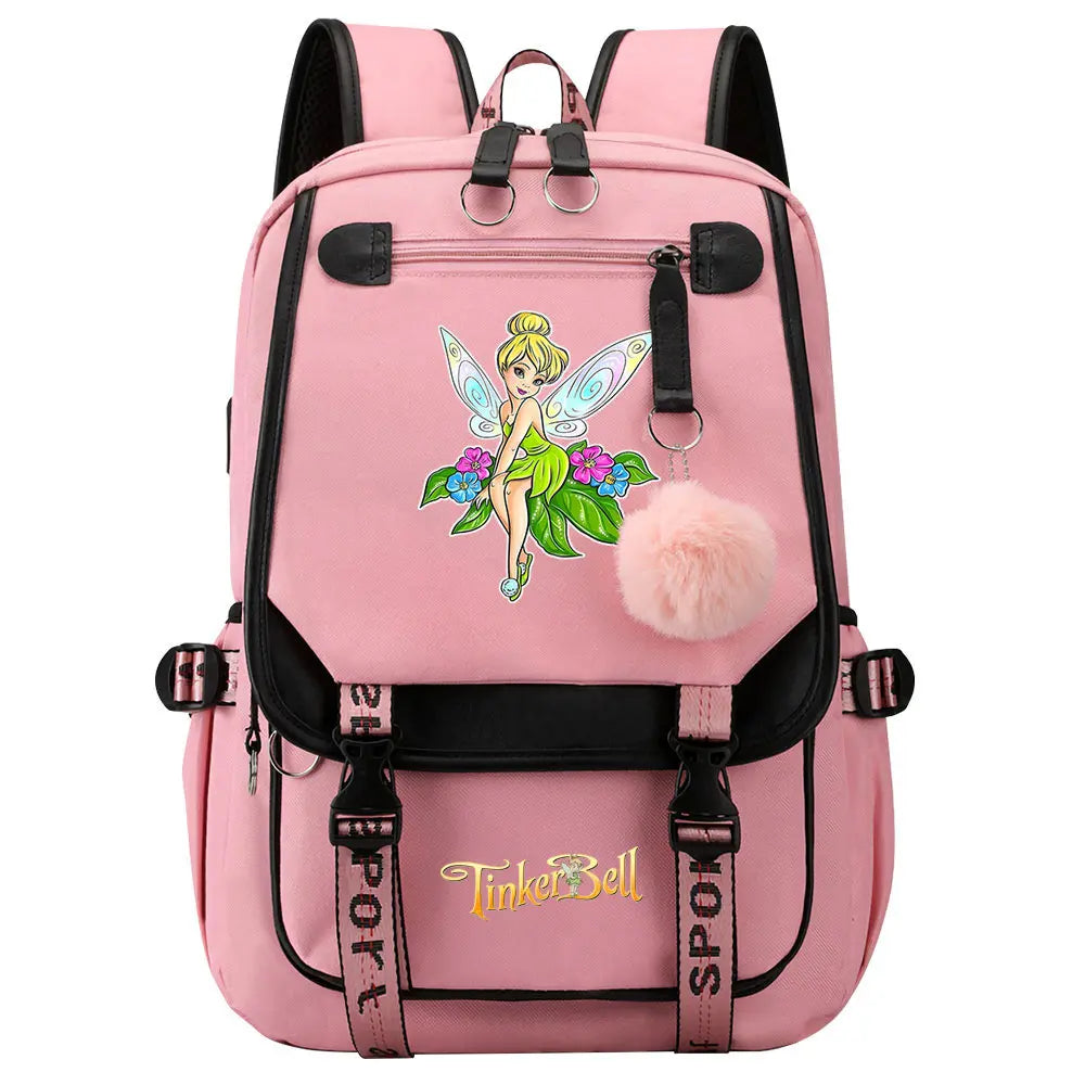 kawaii Tinker Bell Princess Boys Girls Kids School Book Bags Women USB Bagpack Teenagers Canvas Laptop Travel Student Backpack