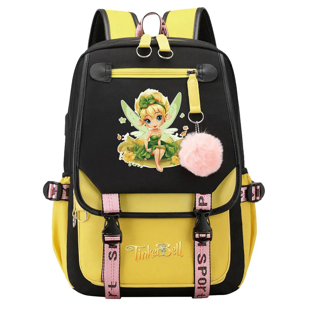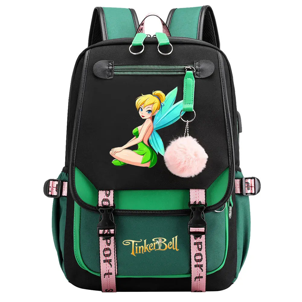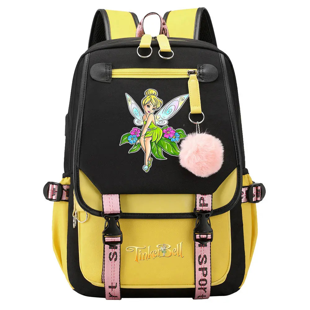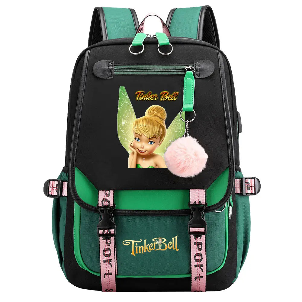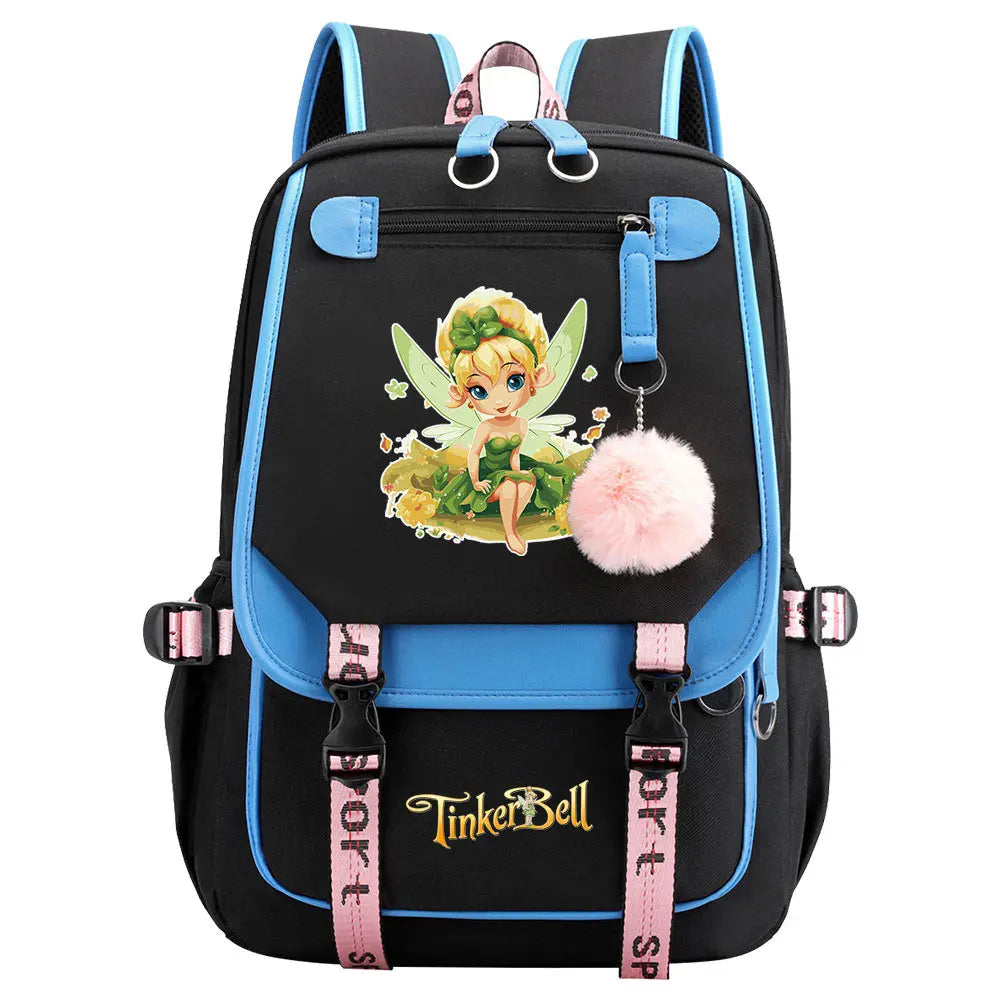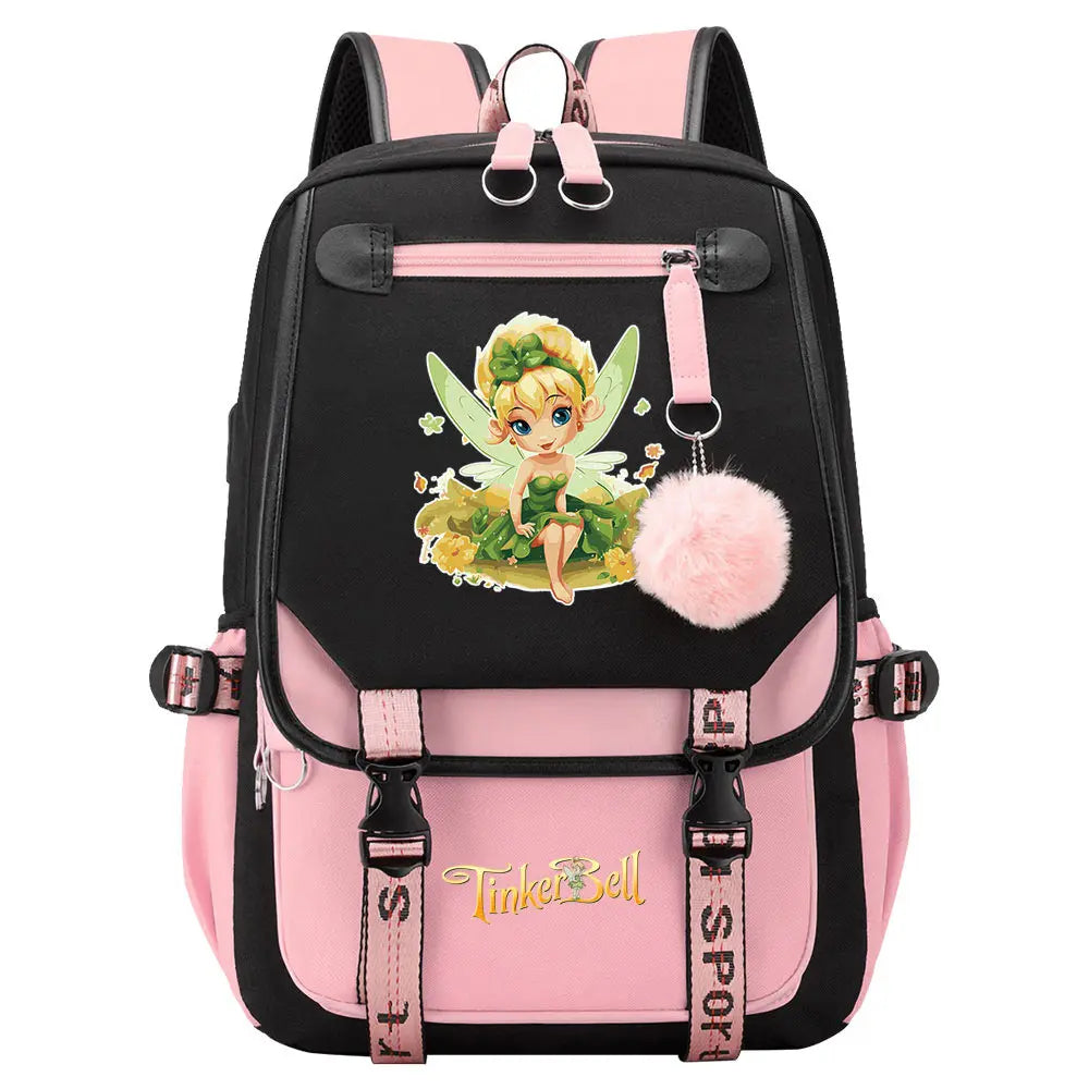 kawaii Tinker Bell Princess Boys Girls Kids School Book Bags Women USB Bagpack Teenagers Canvas Laptop Travel Student Backpack