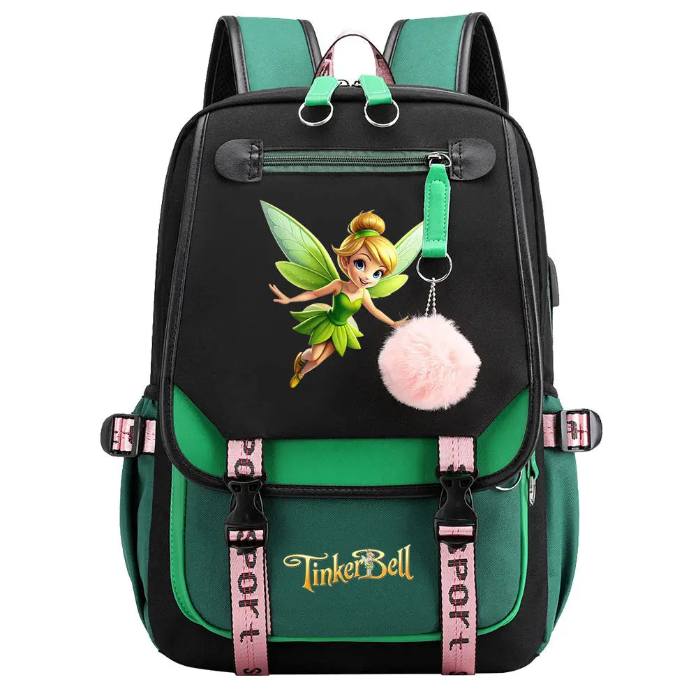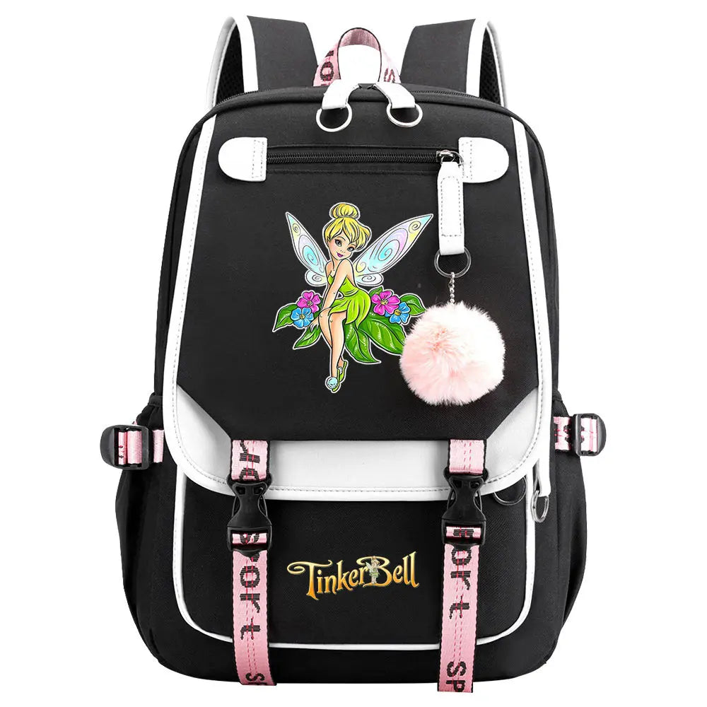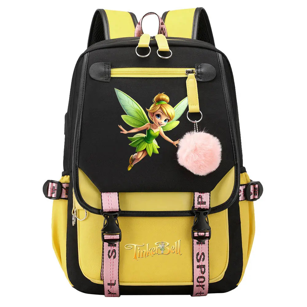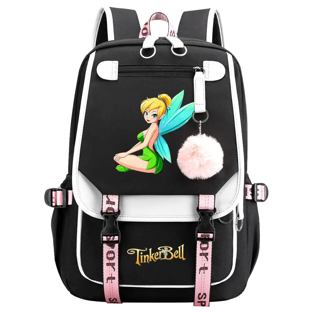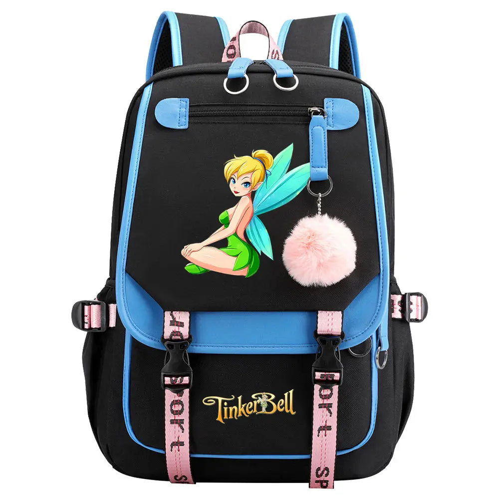 kawaii Tinker Bell Princess Boys Girls Kids School Book Bags Women USB Bagpack Teenagers Canvas Laptop Travel Student Backpack
