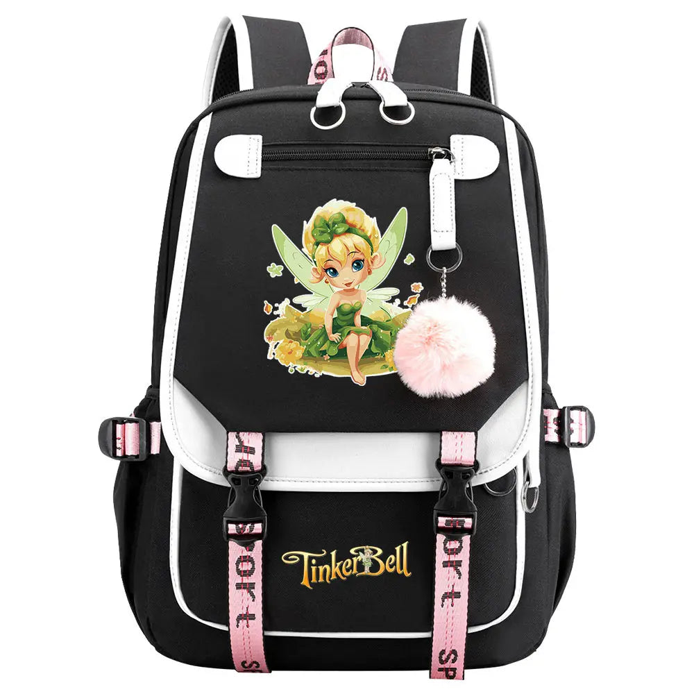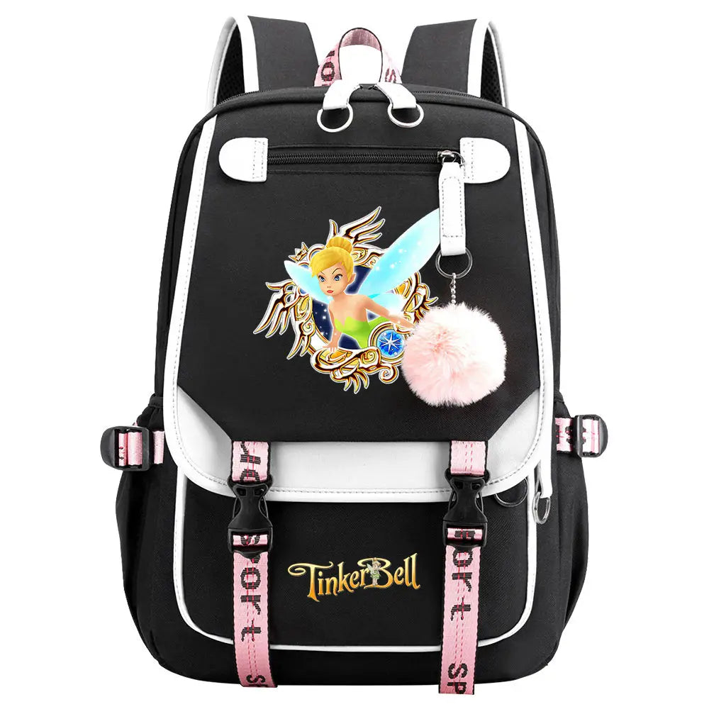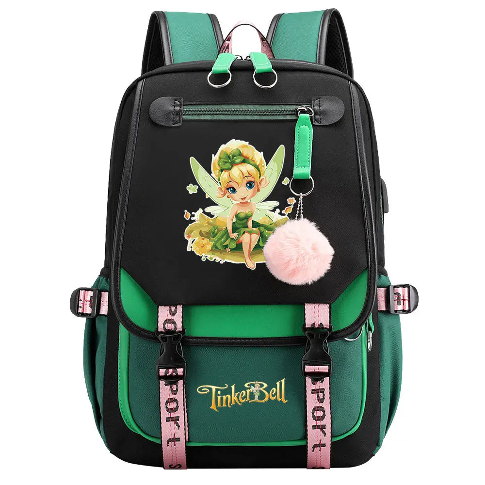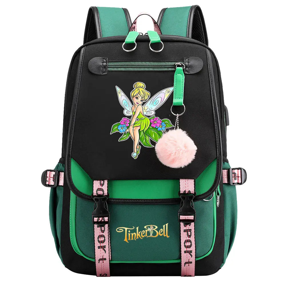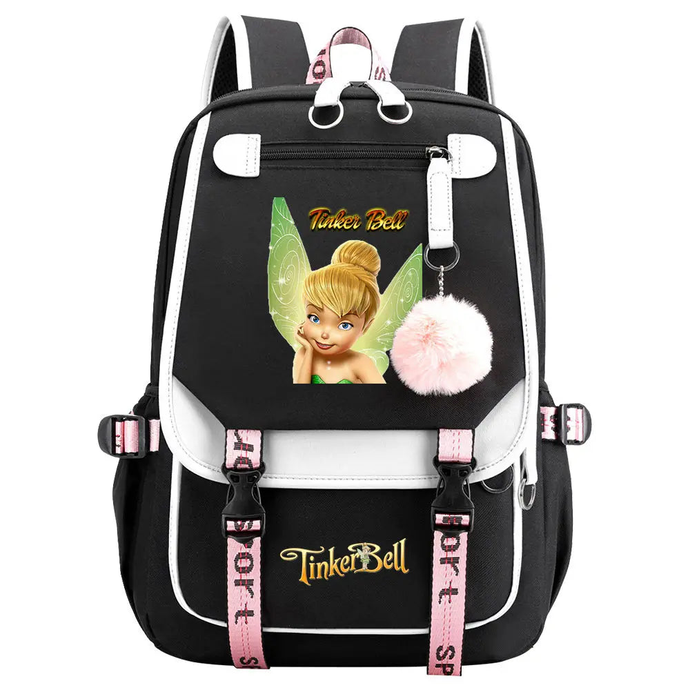 kawaii Tinker Bell Princess Boys Girls Kids School Book Bags Women USB Bagpack Teenagers Canvas Laptop Travel Student Backpack