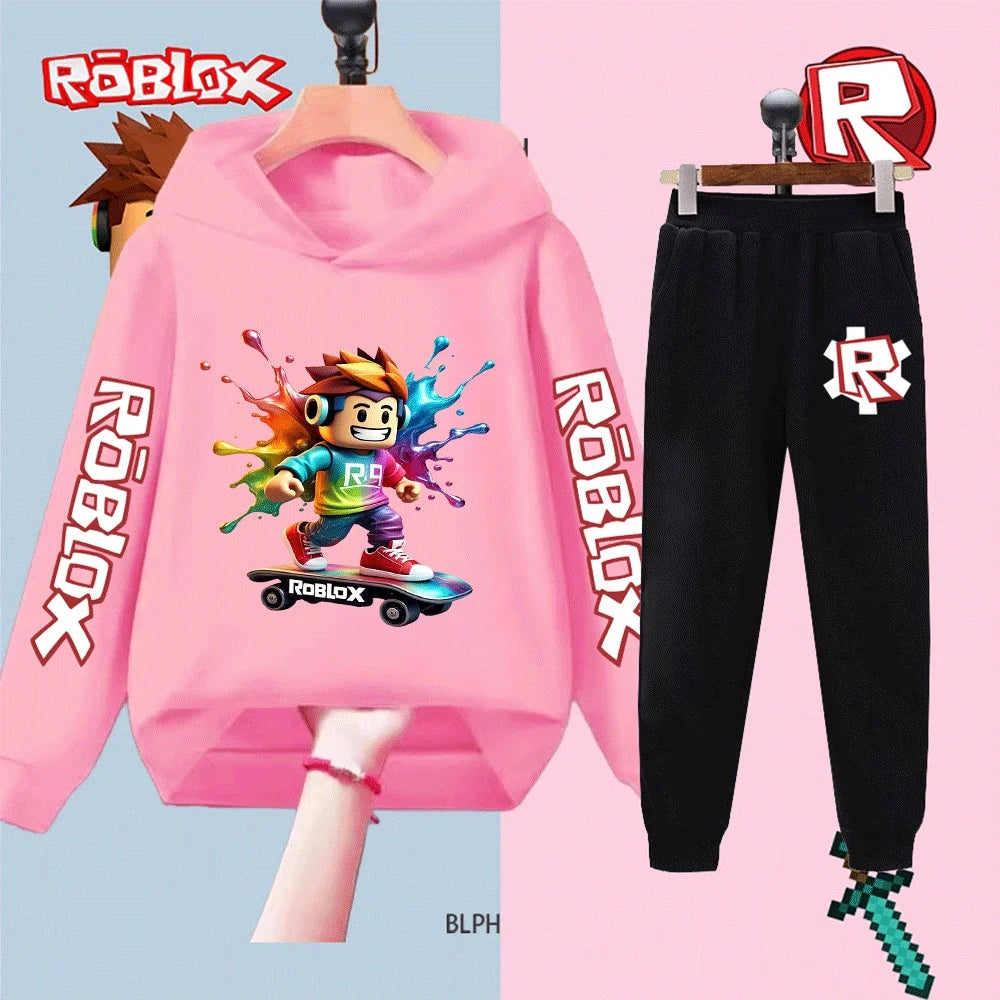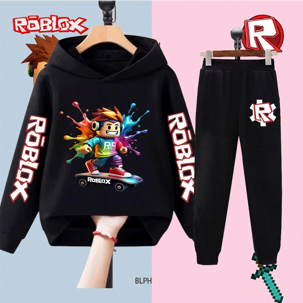 Kids Roblox Printed Sweatshirt Set Boys Girls Long Sleeve Top Pants Casual Sportswear Outfit Children's Fashion Clothing