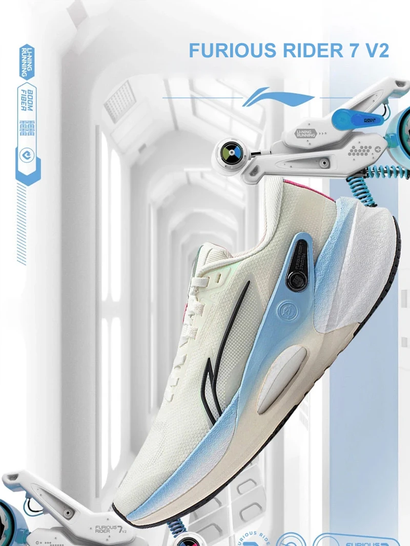 Li-Ning Men FURIOUS RIDER 7 V2 Stability Running Shoes BOOM FIBER Cushion Stable Support Sport Shoes Wearable Sneakers ARZU003