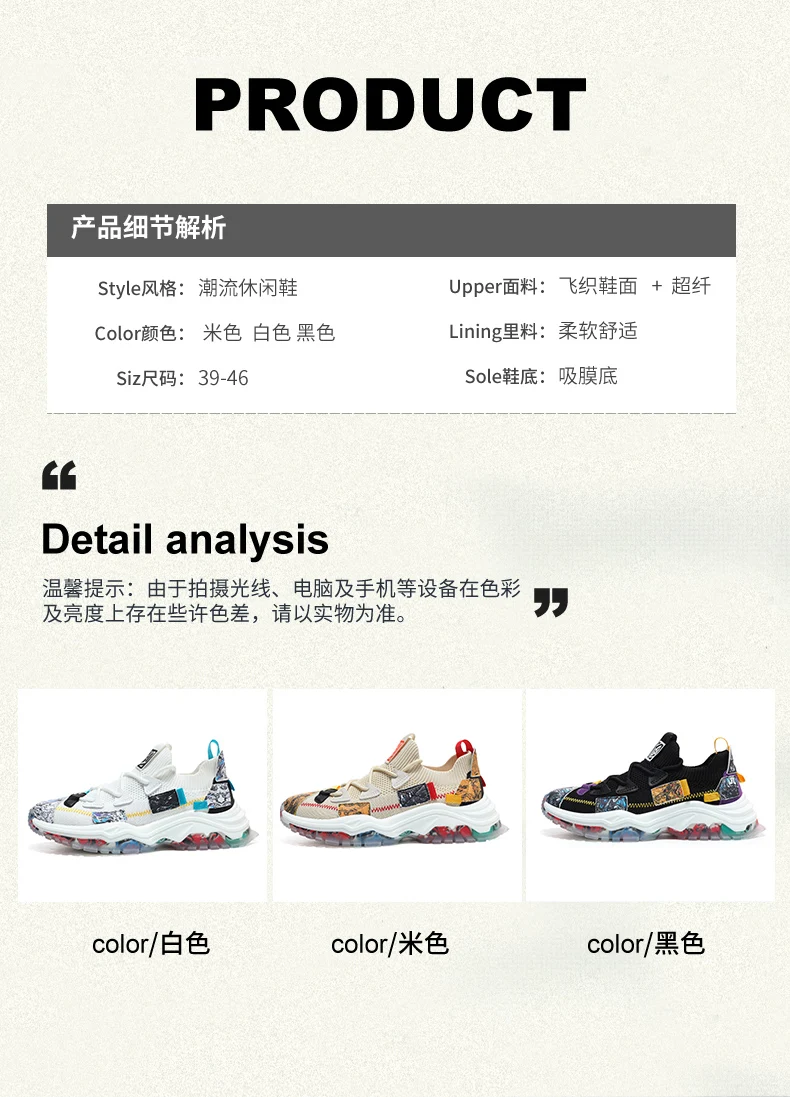 SPECIFICATIONSBrand Name: yuzhyUpper Material: Mesh (Air mesh)Pattern Type: Mixed colorsFeature: BreathableFeature: Hard-WearingFeature: Anti-OdorFit: Fits true to size, take your normal... Read more
