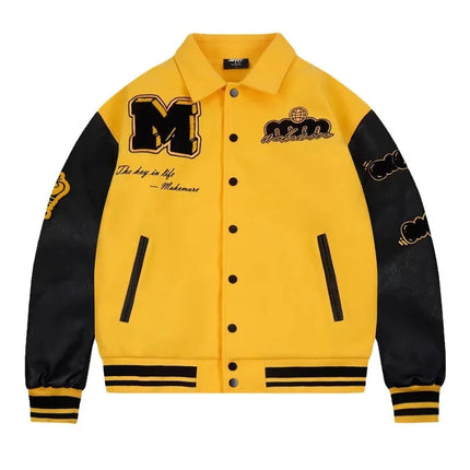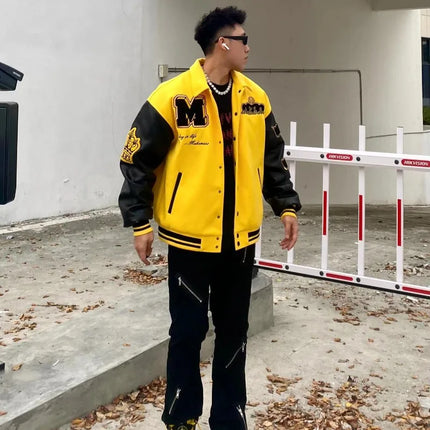 Spring And Autumn High Street Men'S And Women'S Letter Collar Jacket Couple'S Baseball Suit Splicing Versatile Motorcycle Coat